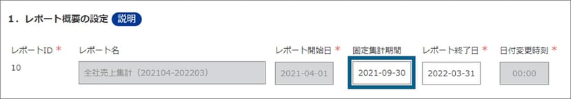 2.「固定集計期間」フィールドに変更(再集計)したくない日付の末日を入力。