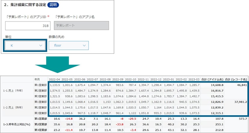 kintone予実管理Tips集 予実管理アプリパック on kintone トラブル対応Tips集~集計した数値の桁数が多くて見づらい 予実管理アプリパック on kintone トラブル対応 Tips集 集計した数値の桁数が多くて見づらい →「予実集計」レコードの「単位」で、"K"や"M"を選択して、表示桁数を変更して下さい。 tagPlaceholderカテゴリ: kintone, Tips, 予実管理